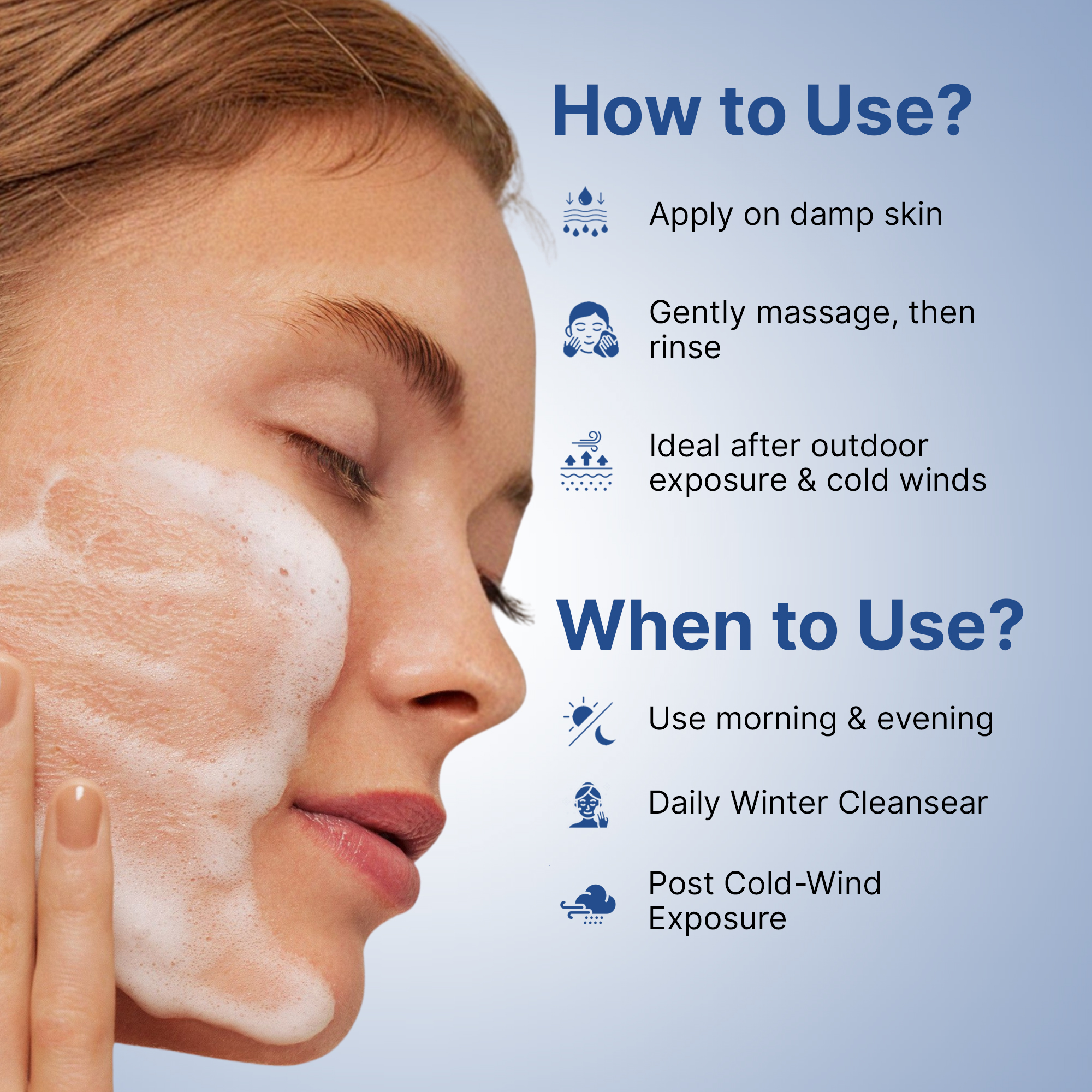 Daily Cleanser for Cold & Winter Weather Specially suited for dry, cold climates where skin can feel tight and dehydrated. Helps cleanse gently while maintaining skin comfort and moisture balance.