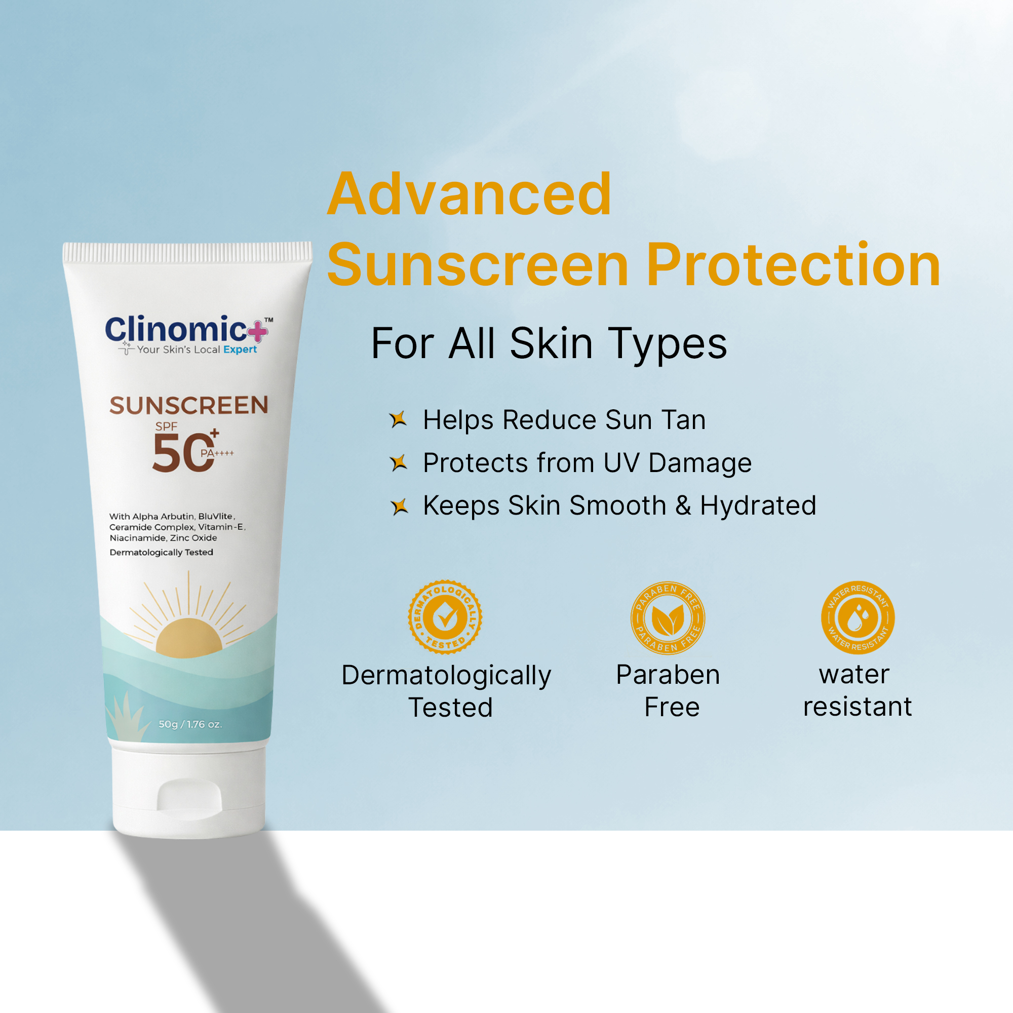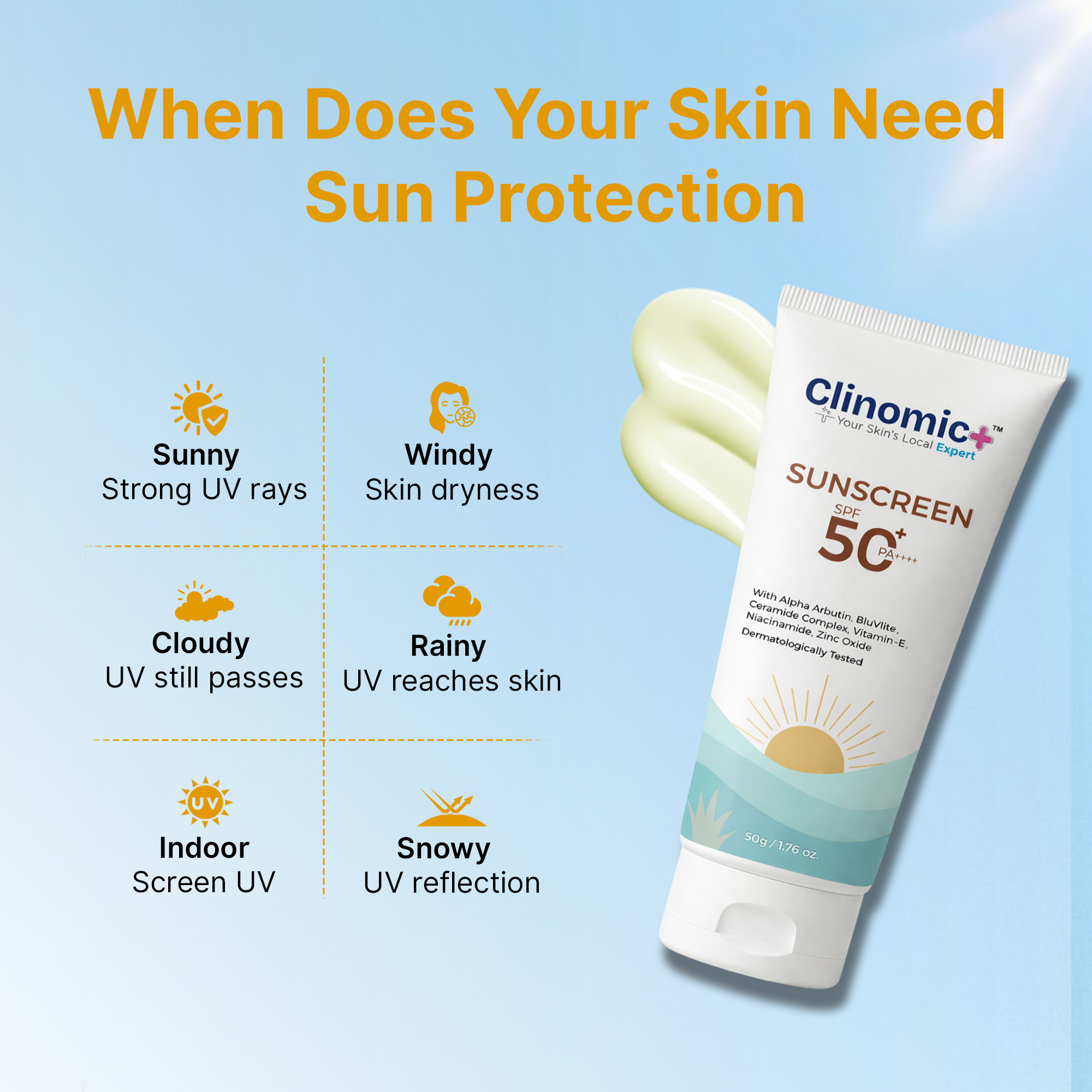 This sunscreen is formulated using research-backed UV filters and supportive ingredients, designed considering general climate conditions and daily sun exposure. However, individual skin responses and sun protection needs may vary depending on skin type, activity level, and environmental factors. This product is for cosmetic use only and is not intended to diagnose, treat, cure, or prevent any medical condition.